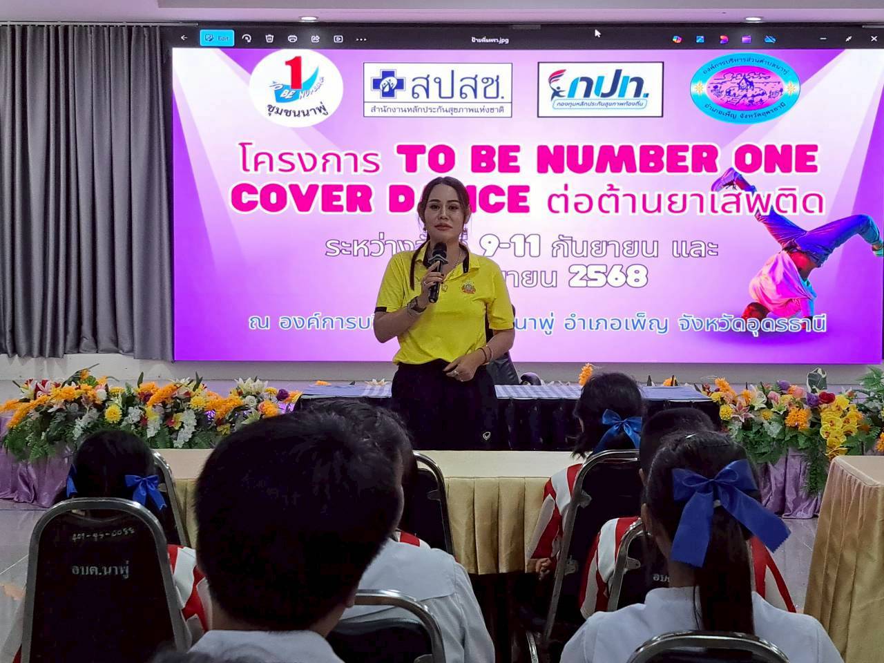 วันที่ 9 กันยายน 2568 ชมรม TO BE NUMBER ONE ตำบลนาพู่ จัดโครงการ TO BE NUMBER ONE COVER DANCE ต่อต้านยาเสพติด ภายใต้งบประมาณสนับสนุนกองทุนหลักประกันสุขภาพองค์การบริหารส่วนตำบลนาพู่ เพื่อเป็นการส่งเสริมให้เยาวชนมีคุณภาพ มีศักยภาพ มีสุขภาพจิต สุขภาพกายที่ดี และไม่เสพสิ่งเสพติดและสิ่งมอมเมา หลีกเลี่ยงสภาวะที่เสี่ยงต่อความรุนแรงโรคภัยและอุบัติเหตุรวมทั้งปัญหาทางเพศ ณ ห้องประชุมพระองค์ตื้อ อบต.นาพู่ อ.เพ็ญ จ.อุดรธานี